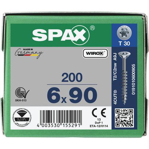 Boite de 200 vis universelles T-Star Plus à tête fraisée TX Ø - Spax