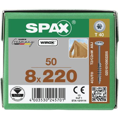 Boite de 50 vis à bois Ø 8mm à tête disque TX - Spax