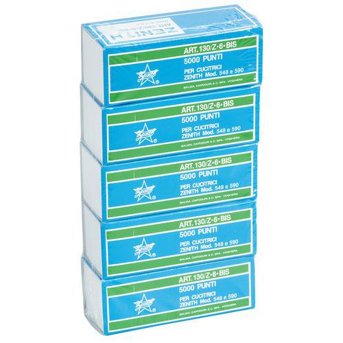 | Intitulé du produit | Boîte de 5000 agrafes 6/6 Zenith, Type d'agrafe: 6/6, Nb d'agrafes/boîte: 5000 |