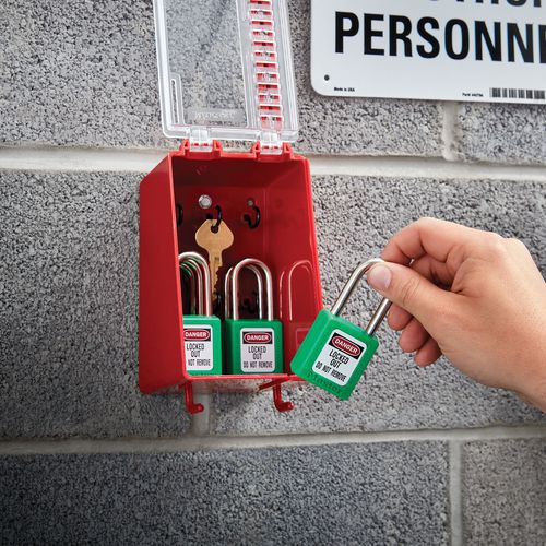 Boîte de consignation de groupe nº3570, Largeur: 101 mm, Longueur: 116 mm, Coloris: Rouge, Matériau: Acier