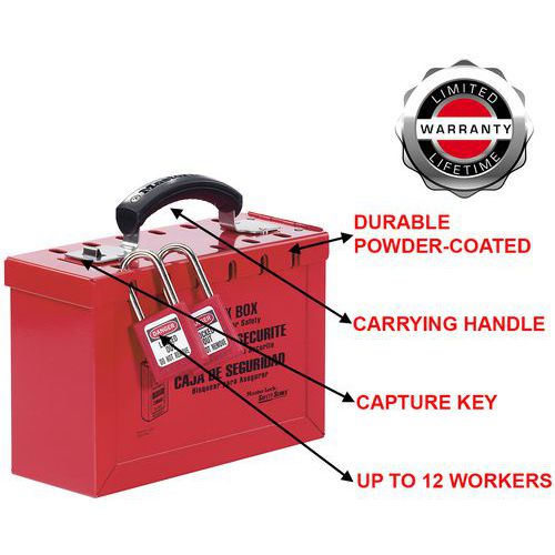 | Intitulé du produit | Boîte de consignation de groupe nº498, Largeur: 95 mm, Longueur: 235 mm, Coloris: Rouge, Matériau: Acier |