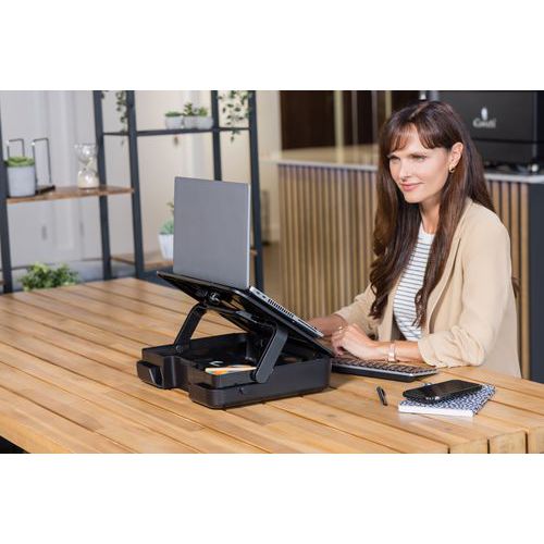 Le support comporte 5 réglages en hauteur pour favoriser une bonne position ergonomique lorsque vous regardez l'écran de votre ordinateur portable.