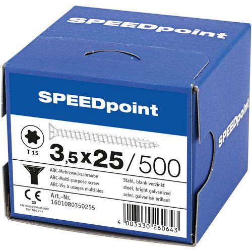 Boite de vis multi-usage à tête fraisée TXØ de 3,5 à 5 mm - SpeedPoint