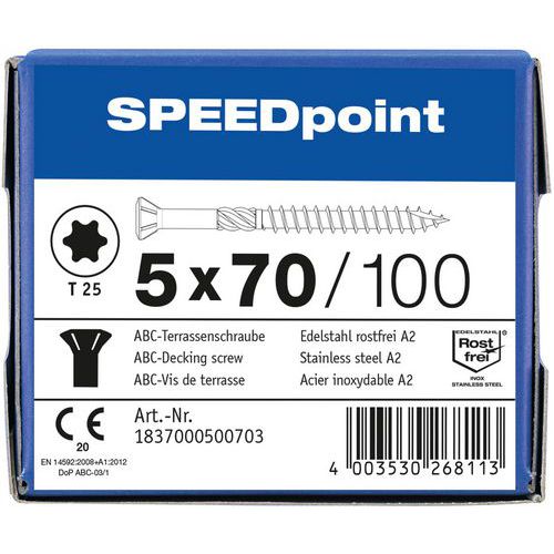 Boite de vis terrasse inox A2 à tête bombée TX Ø 5 mm - SpeedPoint