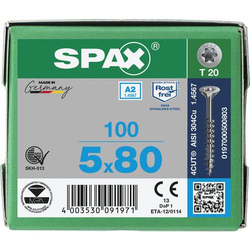 Boite de vis universelles pour extérieur à tête fraisée TX Ø - Spax