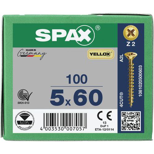 Boite de vis universelles Yellox à tête fraisée PZ Ø 3 à 5 mm - Spax