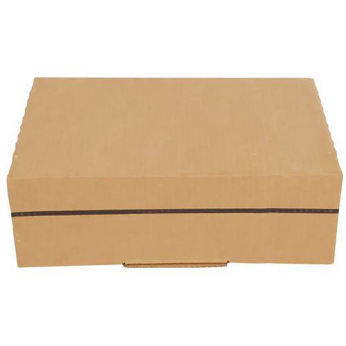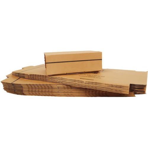 Boîte poste avec fermeture sécurisée grâce sa bande adhésive et ses pattes de renfort sur les côtés. Prête à l'emploi, elle ne nécessite aucun ajout de ruban adhésif. Boîte carton simple cannelure, facile à monter.