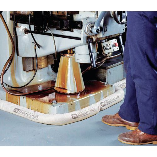 Chaussettes malléables pouvant se mettre dans les coins et à la base des machines pour absorber les fuites. Absorbe les liquides industriels les plus courants : eau, huiles, solvants, liquides de refroidissement et plus. Grande capacité d’absorption même à saturation. Enveloppe en polypropylène pour une résistance à la déchirure maximale. Boudin coloris gris pour dissimuler les taches. Pour la maintenance journalière