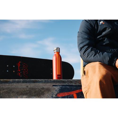 - Bouteille isotherme polyvalente et compacte en inox recyclé conçue pour suivre vos efforts.