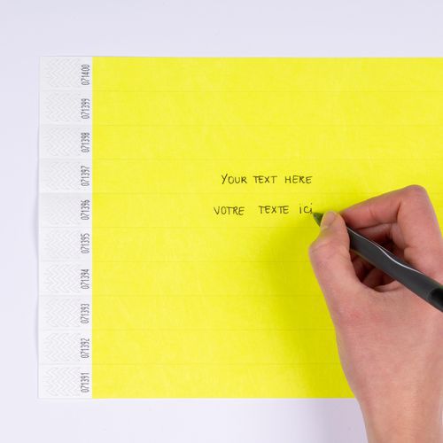 Bracelet indéchirable en papier Tyvek, Largeur: 1.9 cm, Coloris: Jaune Bracelet indéchirable en papier Tyvek, Largeur: 1.9 cm, Coloris: Jaune