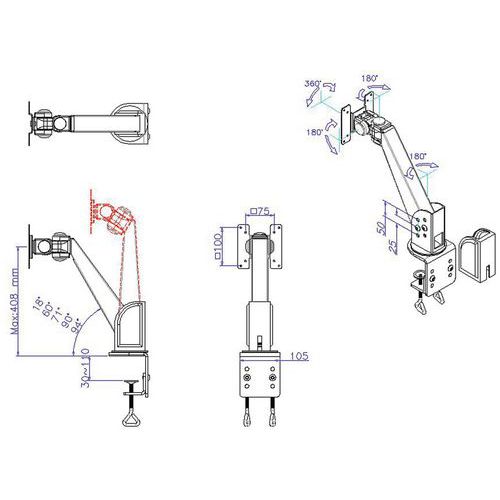 Bras ergonomique pour écran LCD, Charge maxi: 10 kg, Coloris: Noir, Hauteur maxi: 40.8 cm