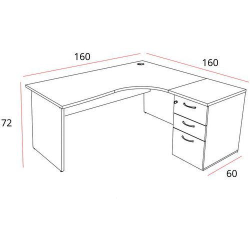| Intitulé du produit | Bureau compact caisson, Type de piétement: En L, Montage: À monter, Largeur hors tout: 160 cm |