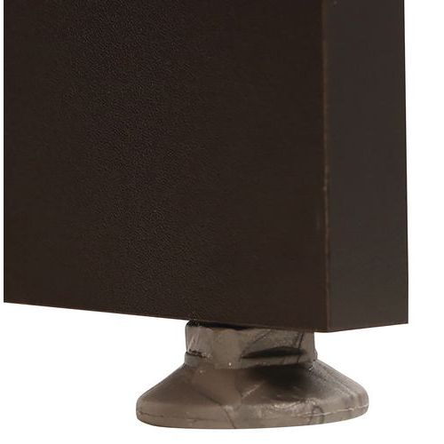 Bureau moderne et pratique. Voile de fond structurel en retrait du plateau pour le passage des câbles. Piètements munis de vérins de mise à niveau. Encoche passe-câbles en partie haute. Idéal pour le télétravail