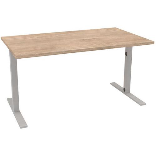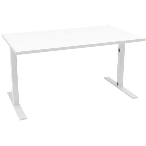 - Bureau droit avec piètement en T et plan de travail aggloméré d'une épaisseur de 30mm.