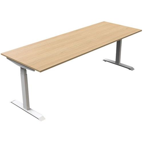 Bureau droit pour votre espace de travail. Pieds en T. Réglable en hauteur avec mécanisme électrique. Plateau mélaminé.