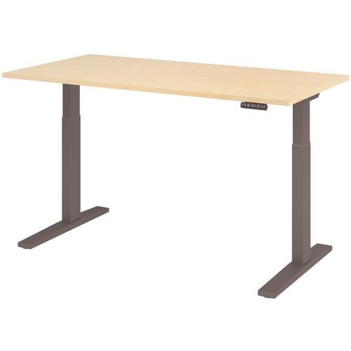 Bureau électrique Série XMKA 160cm. Plateau épaisseur 25mm et rebord renforcé. Piètement en C graphite ou argenté. Dispose d'un réglage électrique progressif de la hauteur : 70-120cm. Avec une commande électrique à 1 niveau, 2 moteurs. Capacité charge: 60kg dynamique, 100kg statique. Livré non-monté, montage simple.