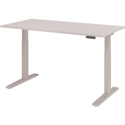 Bureau électrique Série XMKA 160cm. Plateau épaisseur 25mm et rebord renforcé. Piètement en C graphite ou argenté. Dispose d'un réglage électrique progressif de la hauteur : 70-120cm. Avec une commande électrique à 1 niveau, 2 moteurs. Capacité charge: 60kg dynamique, 100kg statique. Livré non-monté, montage simple.