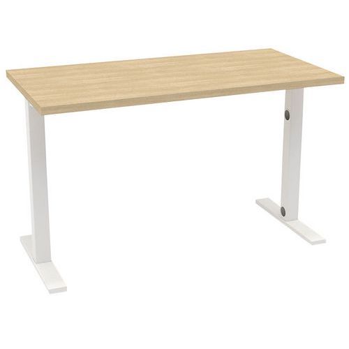 - Bureau droit avec piètement en T et plan de travail aggloméré d'une épaisseur de 30mm.