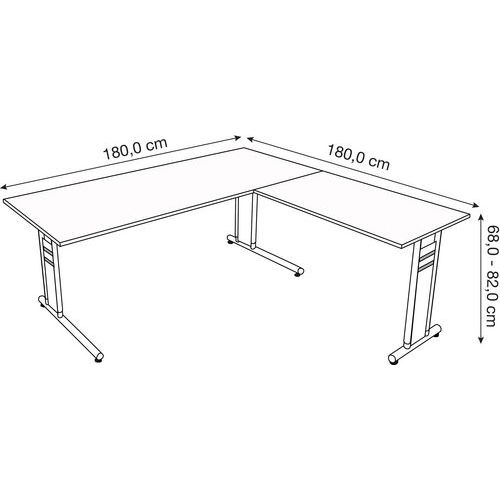 | Intitulé du produit | Bureau réglable avec retour Form 4, Type de piétement: En L, Largeur hors tout: 180 cm |