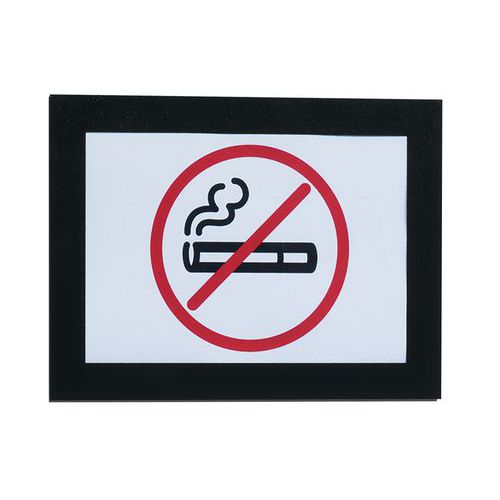Cadre d'affichage adhésif Duraframe® pour surface lisse. Grâce au dos adhésif repositionnable, le cadre se colle et se décolle sur toute surfaces lisses et rigides, comme des murs, des portes… Lisibilité recto-verso du document sur une surface vitrée. Actualisation simple et rapide, maintien des documents grâce à l'encadrement magnétique. Utilisation au format portrait ou paysage. Solution idéale pour afficher les informations générales et obligatoires d'entreprise, les promotions, les règlements intérieurs, les notes d'information etc.