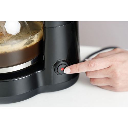 - Sa plaque chauffante maintient le café à bonne température et son réservoir d’eau visible facilite le remplissage.