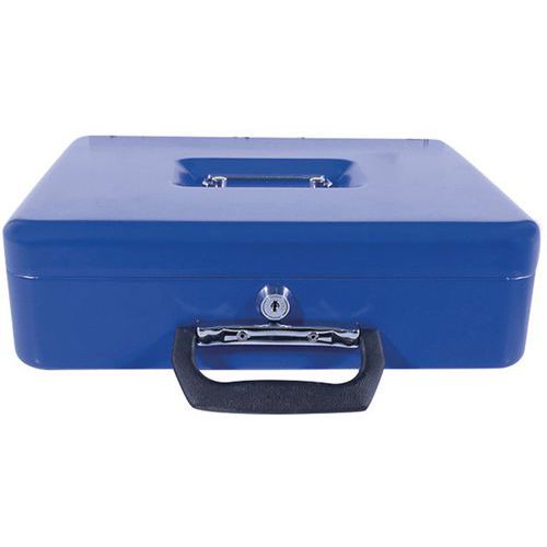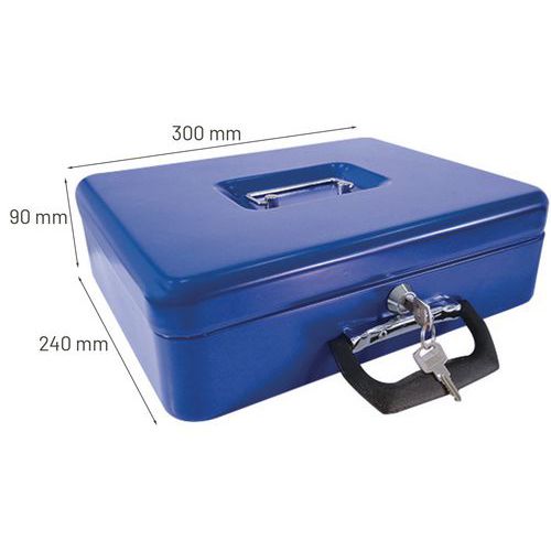 Caisse à monnaie à clé, Coloris: Bleu, Largeur: 240 mm, Longueurs: 300 mm, Hauteur: 90 mm, Matériaux: Acier