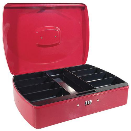Caisse à monnaie avec fermeture à code, Coloris: Rouge, Largeur: 238 mm, Longueurs: 330 mm, Hauteur: 90 mm