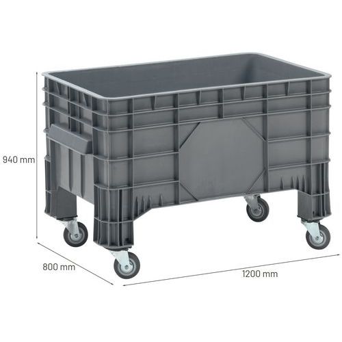 Caisse-palette empilable - Parois pleines - Sur roues - Manutan Expert