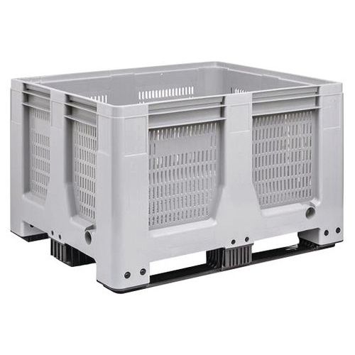 Caisse-palette légère et de grand volume pour maximisation et optimisation de la charge. Performante avec base renforcée pour 450 kg de charge unitaire avec déflexion minimale. Base prévue pour pion anti-glisse garantissant une manutention sécurisée supplémentaire. Solide avec conception optimisée des piliers d'angle pour des transferts de charge équilibrés. Lavage et séchage rapides avec la surface horizontale inclinée favorisant le drainage de l'eau. Zones perlées et en creux pour les étiquettes adhésives, RFID ou pour gravure du logo marque. Caisse à coin supérieur interne facilitant le centrage à l’empilage et assurant la sécurité des piles.