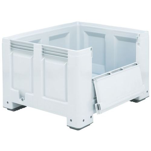 - Avec ouverture latérale permettant d'accéder aux marchandises même dans les piles.