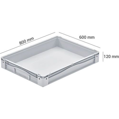 Bac norme Europe plein, Capacité: 49 L, Gerbable: oui, Hauteur hors tout: 120 mm, Largeur hors tout: 600 mm