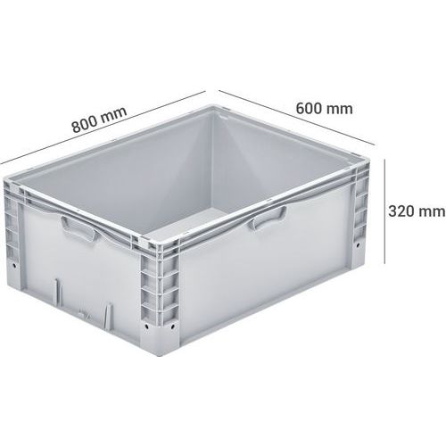 Bac norme Europe plein, Capacité: 133 L, Gerbable: oui, Hauteur hors tout: 320 mm, Largeur hors tout: 600 mm