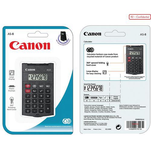 | Intitulé du produit | Calculatrice de poche 8 chiffres grise foncée AS-8 HB, Étanche: non |