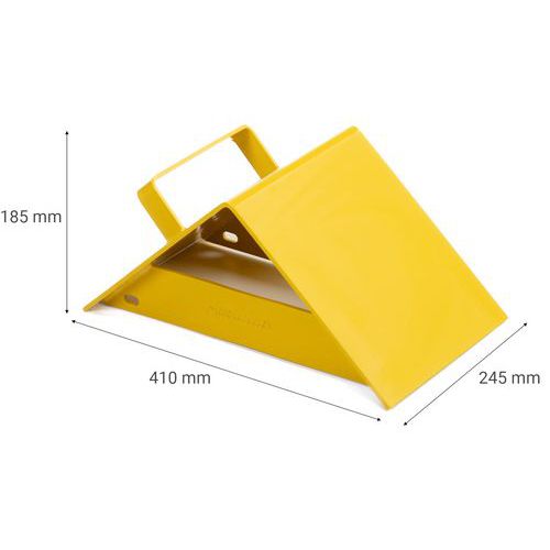 Cale roue camion en métal jaune avec poignée - Manutan Expert