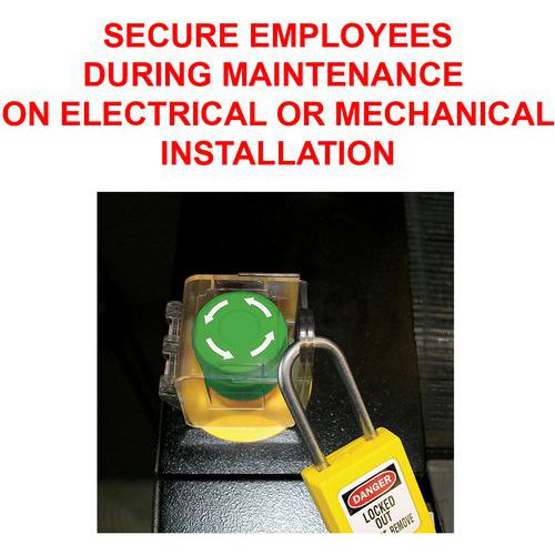 Le couvercle pour bouton-poussoir Master Lock n° S2153 et interrupteur rotatif installé empêche l'accès à un interrupteur ou à une commande.
