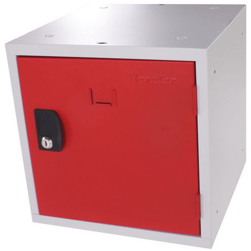 Vestiaire cubique prépercé à assembler. Fermeture à clé par serrure cylindrique. Case avec emplacement porte-étiquettes. Confortable avec ouverture porte à 180°.