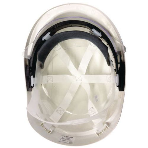 Casque de protection offrant aux porteurs de lunettes la garantie de pouvoir travailler en toute sécurité grâce à sa protection oculaire moulée intégrée contre les chocs certifiée de niveau A.