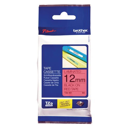 Cassette de ruban pour étiqueteuse Brother, Fond coloris: Rouge, Type: TZE-431, Ruban longueur: 8 m