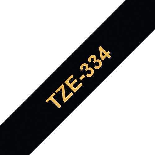 Cassette de ruban pour étiqueteuse Brother, Fond coloris: Noir, Type de produit: TZE-334, Ruban longueur: 8 m