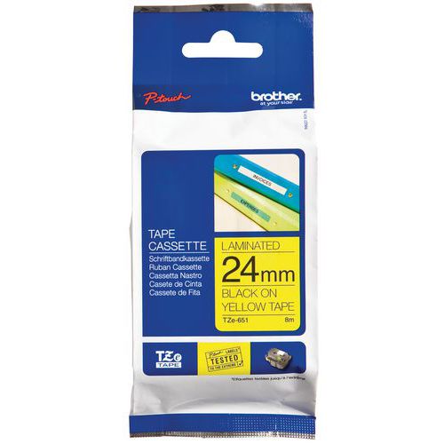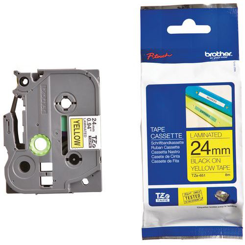 Cassette de ruban pour étiqueteuse Brother, Ruban largeur: 24 mm, Fond coloris: Jaune