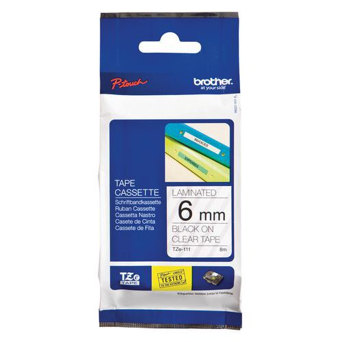 Cassette de ruban pour étiqueteuse Brother, Fond coloris: Transparent, Type: TZE-111, Ruban longueur: 8 m