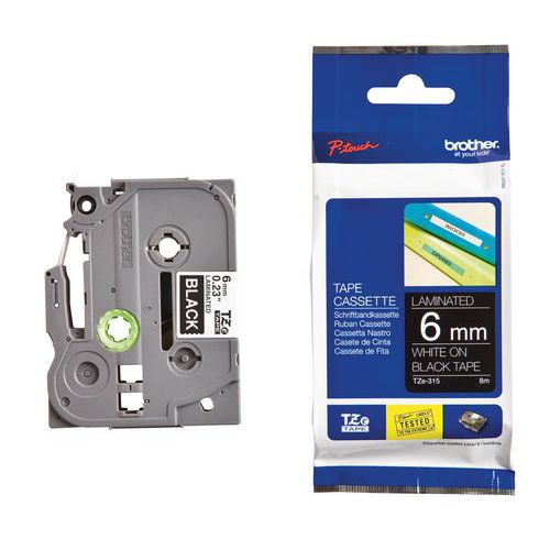 Cassette de ruban pour étiqueteuse Brother, Fond coloris: Noir, Type: TZE-315, Ruban longueur: 8 m
