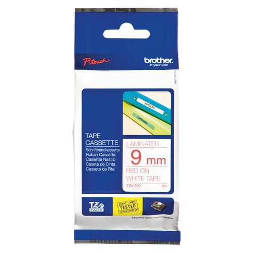 Cassette de ruban pour étiqueteuse Brother, Fond coloris: Blanc, Type de produit: TZE 222