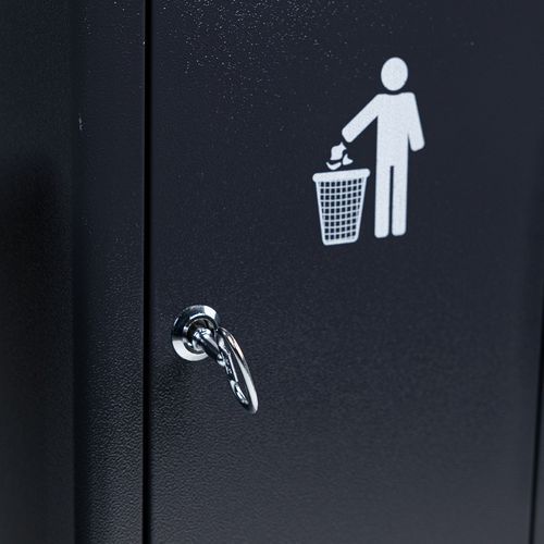 - Cendrier-poubelle équipé d’une serrure pour plus de sécurité.
