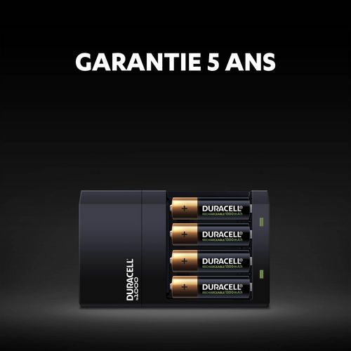 Le chargeur de piles Hi-Speed est accompagné d'une garantie Duracell de 5 ans.