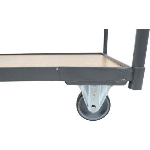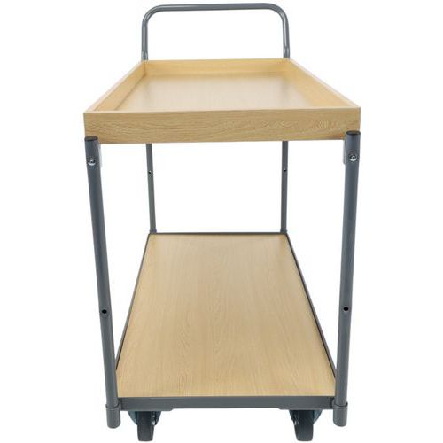 Chariot à plateau bois avec rebord conçu pour supporter des charges allant jusqu'à 250 kg.