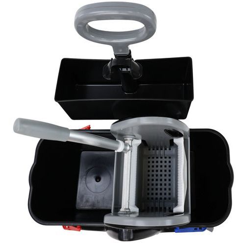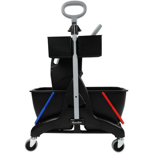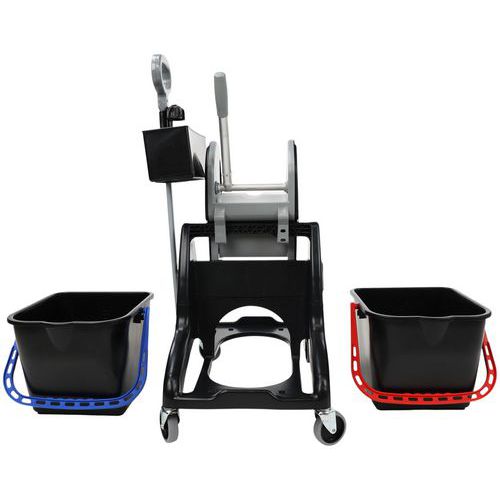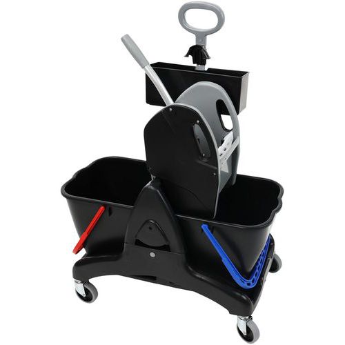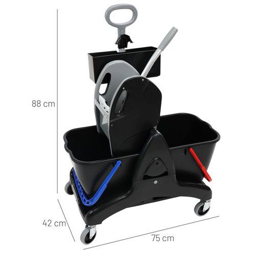 | Intitulé du produit | Chariot de lavage 2 seaux 15 L avec presse + bac produit, Capacité: 30 L, Coloris: Noir, Hauteur: 88 cm |