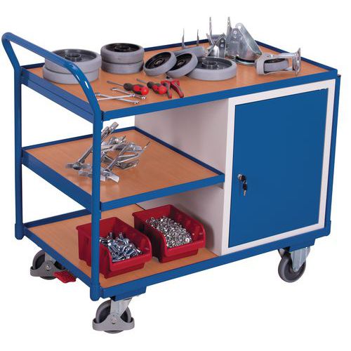 | Intitulé du produit | Chariot ergonomique 3 plateaux bois et bloc-coffre, Force: 250 kg, Hauteur hors tout: 1010 mm |