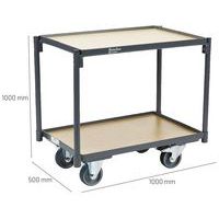 Chariot plateaux bois pour bacs, Force: 250 kg, Hauteur hors tout: 1000 mm, Largeur hors tout: 500 mm