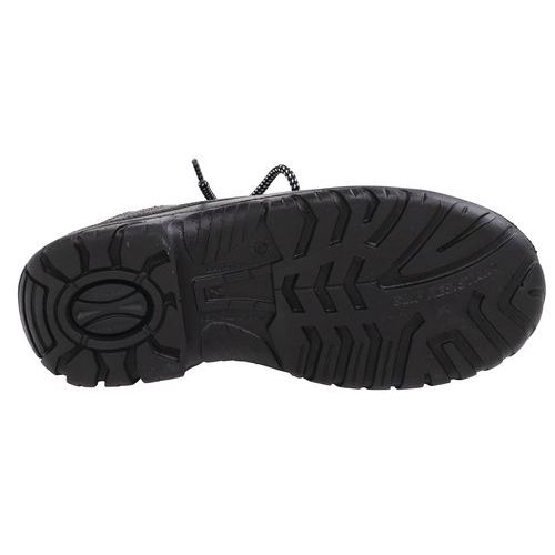 Chaussure de sécurité haute avec embout de protection en polycarbonate, et semelle anti-glisse Tige en cuir grainé de 2-0-2,2 mm d’épaisseur pour une meilleure résistance mécanique et durabilité Idéale sur les sols et environnements industriels Semelle légère et flexible, injectée PU2D antidérapante grâce à une structure à crampons ouverte pour une meilleure évacuation des liquides Talon décroché pour une sécurité renforcée, notamment sur les échelles